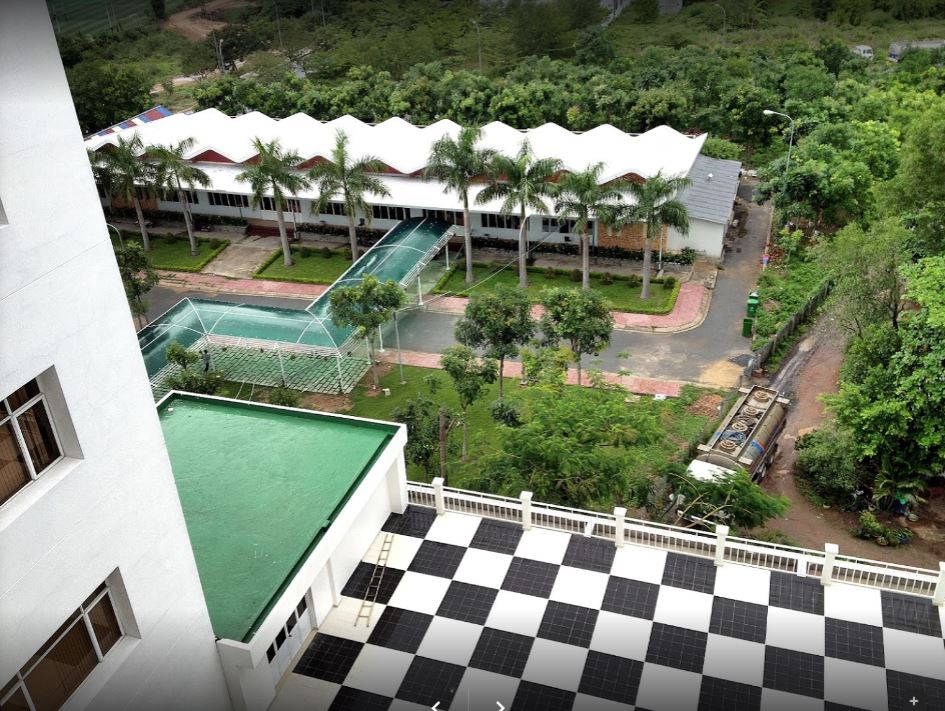 Tuy mang gam màu đỏ chủ đạo nhưng không gian của trường không bị chói mà lại đẹp nhẹ nhàng, tươi mát, thích hợp cho việc thư giãn. Bởi giữa khuôn viên trường có một "khu vườn bí mật" với cây cối, dòng suối nhân tạo và cả ghế gỗ để ngồi nghỉ ngơi. Đứng từ trên lầu nhìn xuống, sinh viên cứ ngỡ mình đang lạc vào một khu nghỉ dưỡng chứ chẳng phải trường học.